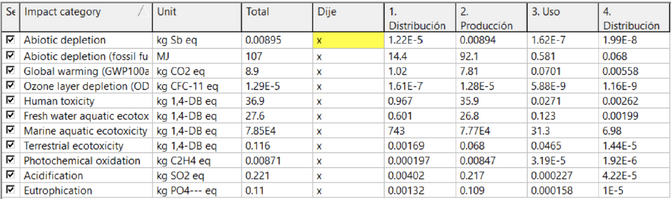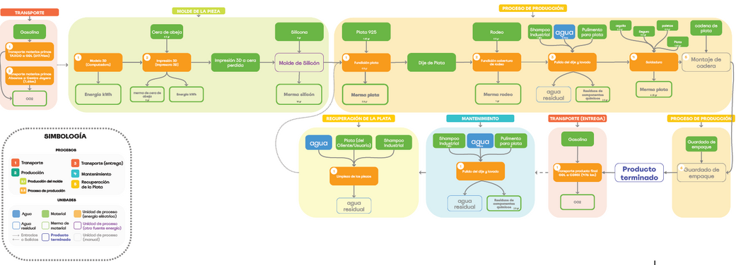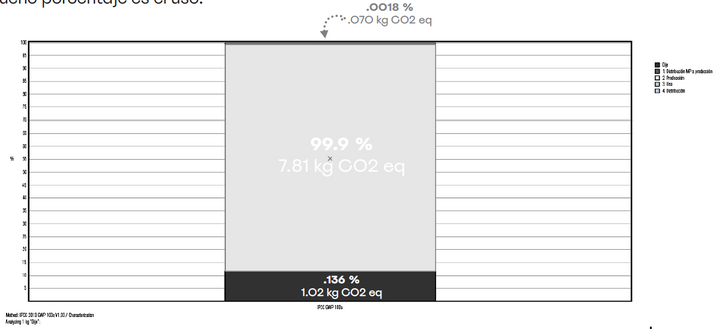 It can be noted that the greatest impact of a pendant occurs during the production stage and to a lesser extent in the procurement of raw materials. The other processes do not represent much in the graphic, and the remaining small percentage accounts for its use.