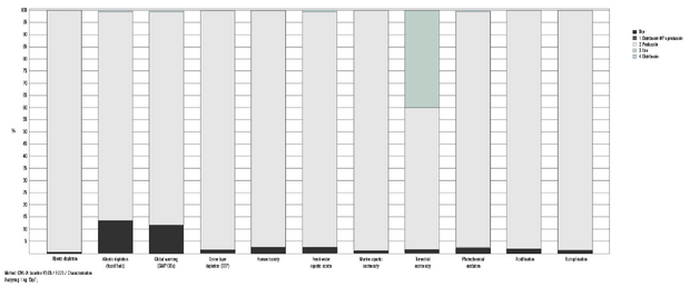 The diagram shows that the production phase has the most significant environmental impact, particularly concerning silver, accounting for 58.1% and emitting 5.18 kg CO2 eq. during welding, as well as 56.3% related to silver rods, equivalent to 5.02 kg CO2 eq.
